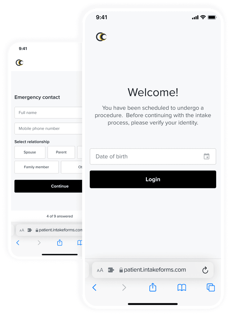 To simplify the process for our patients, they can use a link to complete their forms. For verification we only require their date of birth. Through the link and date of birth, we verify the uniqueness of the patient and show him his forms.
